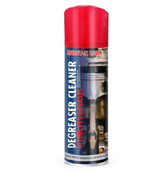 Aerosol desengrasante diseñado para eliminar grasa, aceite y manchas difíciles de diversas superficies.